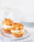 Jetzt den Muffin quer halbieren, die untere Hälfte zuerst mit Apfelkompott und dann mit Sahne bestreichen. Danach die zweite Hälfte draufsetzen und genießen.